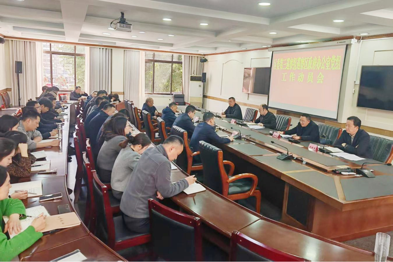 区委第三巡察组副组长及全体巡察专员,区政府办公室领导班子成员参加会议。办公室全体干部职工和下属单位负责人、退休干部代表列席会议。