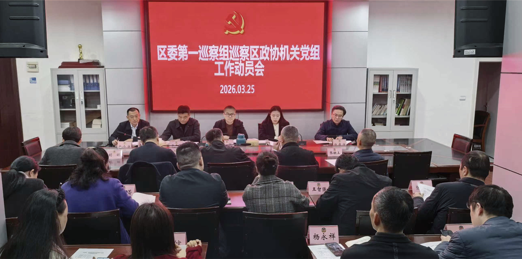 根据六届区委第九轮巡察工作部署,2026年3月25日,区委第一巡察组巡察区政协机关党组工作动员会召开。会前,区委第一巡察组组长张琳主持召开了与区政协机关党组书记杨会静同志的见面沟通会。动员会上,区委巡察工作领导小组成员、区纪委常委、区委巡察办主任王灏就做好本次巡察工作提出要求,张琳作动员讲话,杨会静主持会议并作表态发言。